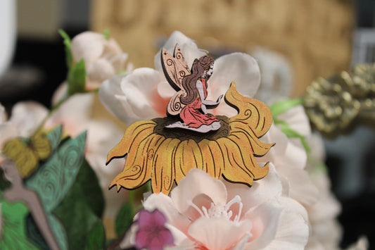 Sunshine & Sunflower - Fairy Wood Pin or Magnet